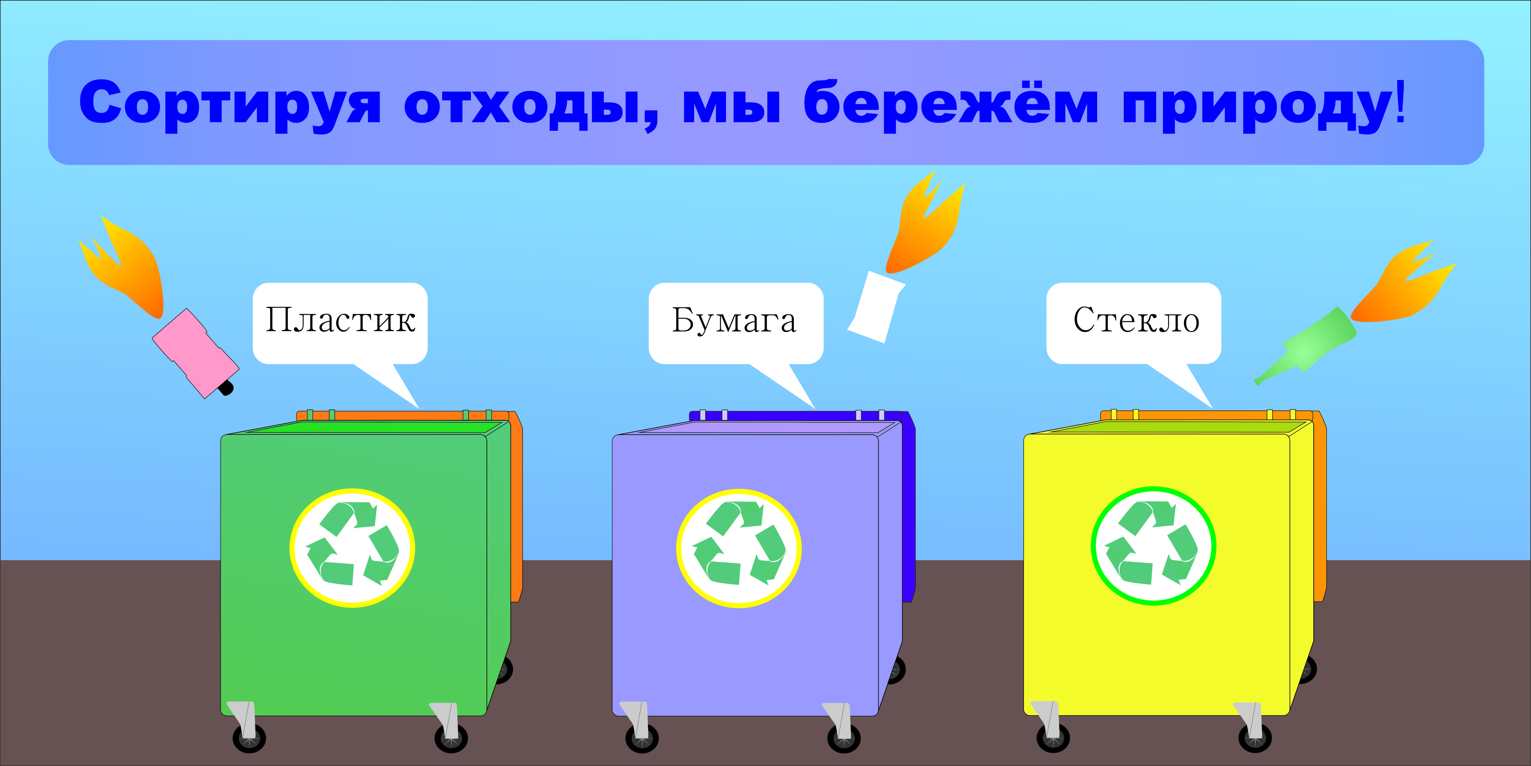 Работа призывает не только бережно относиться к окружающей среде, но и затрагивает тему раздельного сбора мусора.
